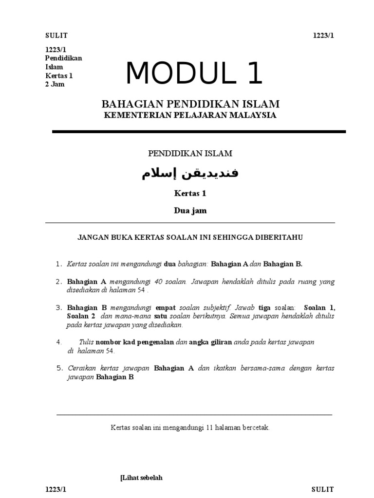 Modul Pendidikan Islam Soalan Spm Kertas1 Set 1 Pdf